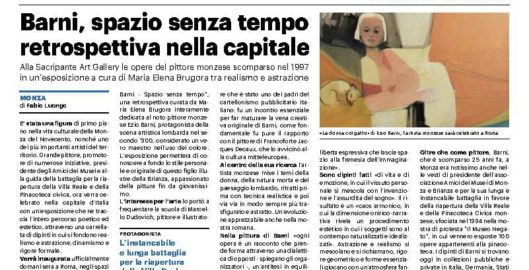 Il Giorno: Barni, Spazio senza tempo. Retrospettiva nella capitale