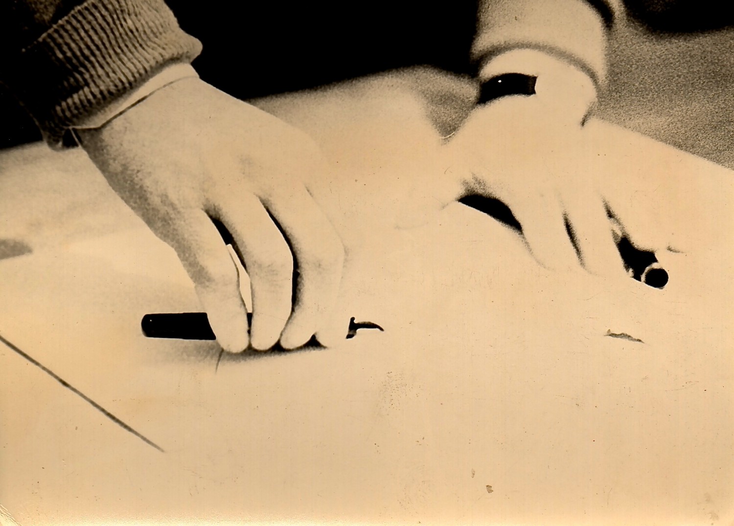 Poi, in seguito all’incontro con il pittore Jacques Decaux, tedesco di Francoforte, intriso di cultura mitteleuropea, Ezio Barni acquisisce una nuova padronanza del tratto: il segno non è casuale, il segno deve dire sinteticamente il tutto.